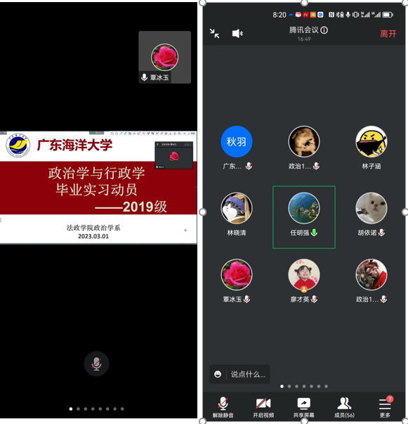 政治学与行政学系在线上召开2019级政治学与行政学专业考研答疑、毕业实习和毕业论文指导会议,会议由任明强老师主持,覃冰玉、王建佶、苏秋羽老师发言,2019级政治学与行政学专业的同学全员参与。