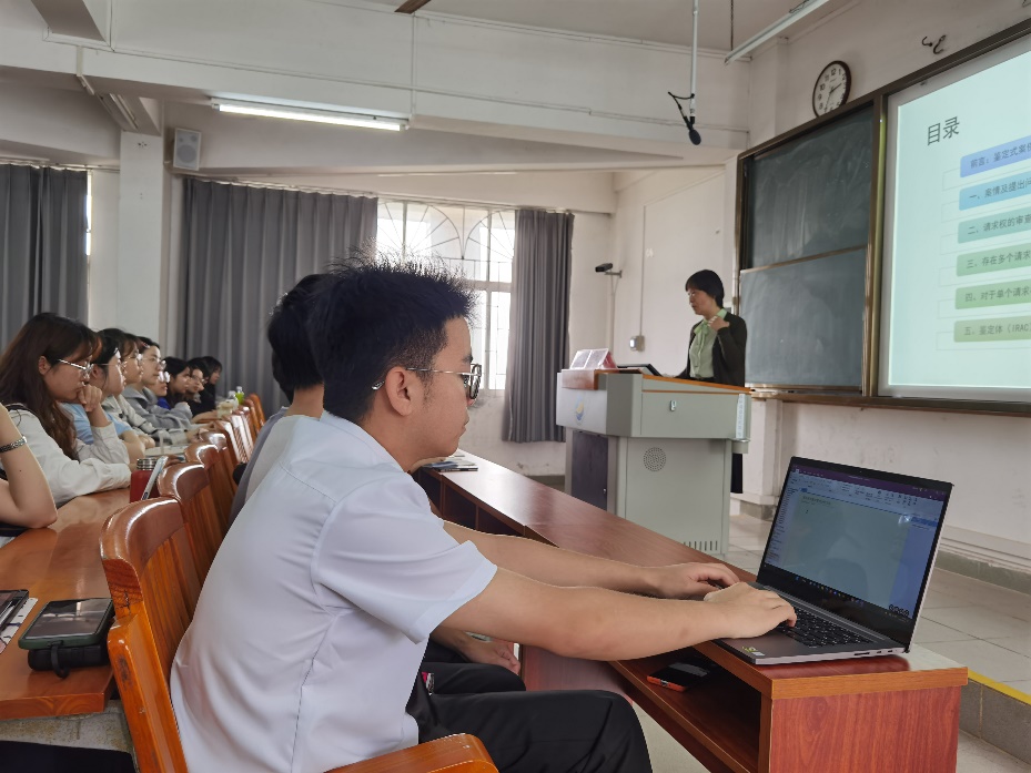 开展鉴定式案例教学实践的经验,然后通过一个经典案例从案情及提出问题(3W问题)、请求权的审查规则(3W legalbasis)、存在多个请求权基础时的审查顺序(外在结构)、对于单个请求权的审查(内在结构)、鉴定体(IRAC)的写作方法等几个方面详细地阐释了请求权基础案例分析方法的思维的基本理论与司法实务应用,为同学们带来了一场思维的盛宴,为大家日后的法律研习指出了一种规范、高效的思维方法。讲座取得了良好的效果。