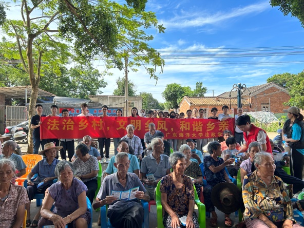 法学2021级专业本科生和专业教师分别就民法典、预防未成年人犯罪法、禁毒法、广东湛江红树林国家级自然保护区管理办法、湛江市优化营商环境条例等开展宣讲,受到麻章区司法局、湖光镇世乔村群众和公司的欢迎和好评。