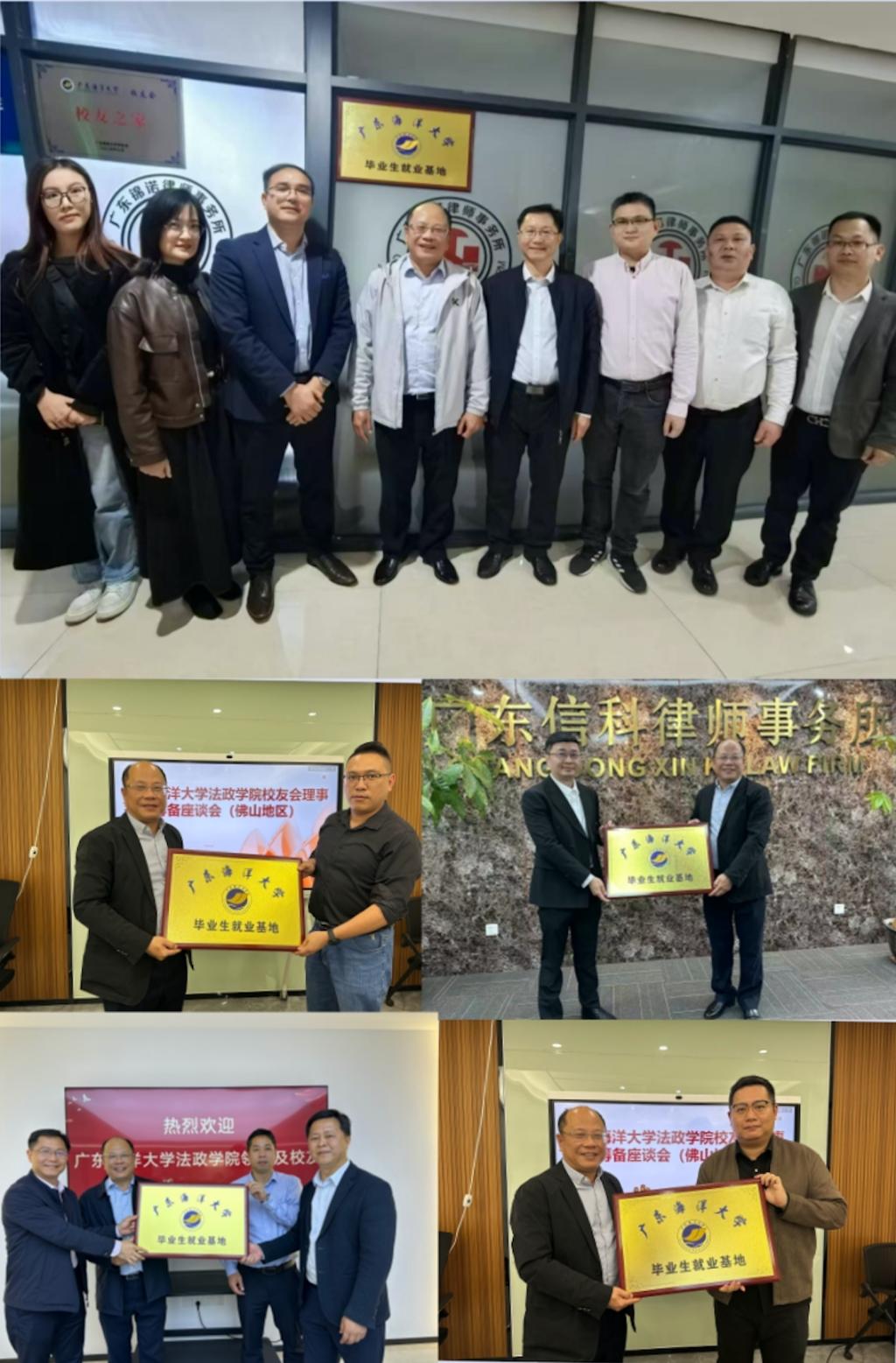 校友创办的广东锦诺律师事务所、广东泰臻律师事务所、广东信科律师事务所、广东顺鼎律师事务所、NDN贸易有限公司实地考察,参观了各企业展厅,详细了解企业发展历程、生产运营、用人需求等情况。