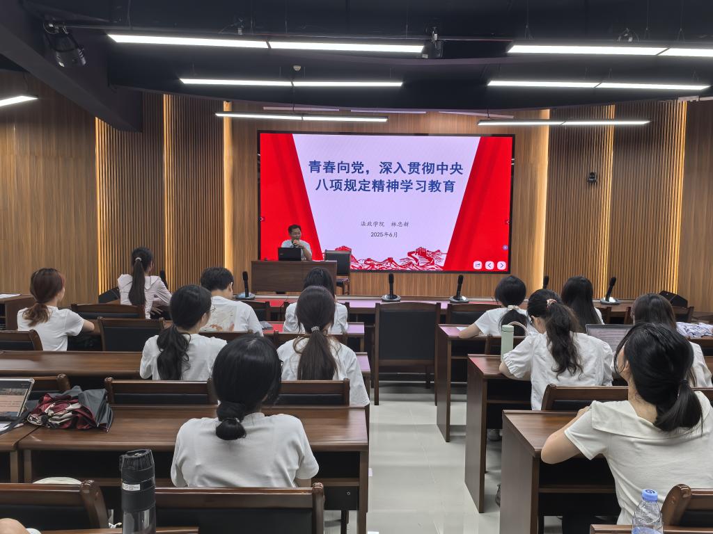 首先,林忠新以《青春向党,深入贯彻中央八项规定精神学习教育》为主题讲授第一专题党课。围绕党中央推进全面从严治党的战略部署,林忠新系统阐述了中央八项规定精神的重大意义、核心内容、大学生入党积极分子践行中央八项规定精神的现实要求。他强调,中央八项规定是新时代党的作风建设的“金色名片”,是密切党同人民群众血肉联系的重要抓手。全体入党积极分子要深刻领悟中央八项规定精神的政治内涵,在思想上树牢纪律意识,在行动中践行严实作风,自觉抵制形式主义、官僚主义、享乐主义和奢靡之风,以实际行动维护党的先进性和纯洁性。