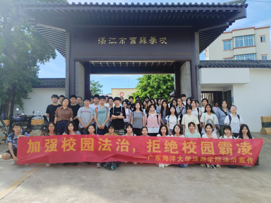 ,曹亚君老师、杨文燕带队,与杨娟、曲明姬、黄琼老师,司法局李媚明、陈靖雯、陈子雄、冯王力、王秋月同志,以及法学1225、法学1226全体同学,以及旧县小学谢业盛校长、湖光镇禁毒办彭楚殷同志共同开展预防未成年人犯罪、禁毒主题宣传活动。并通过组织趣味十足的法律问题抢答活动,为该校学生带来了一堂生动活泼的法治教育课。