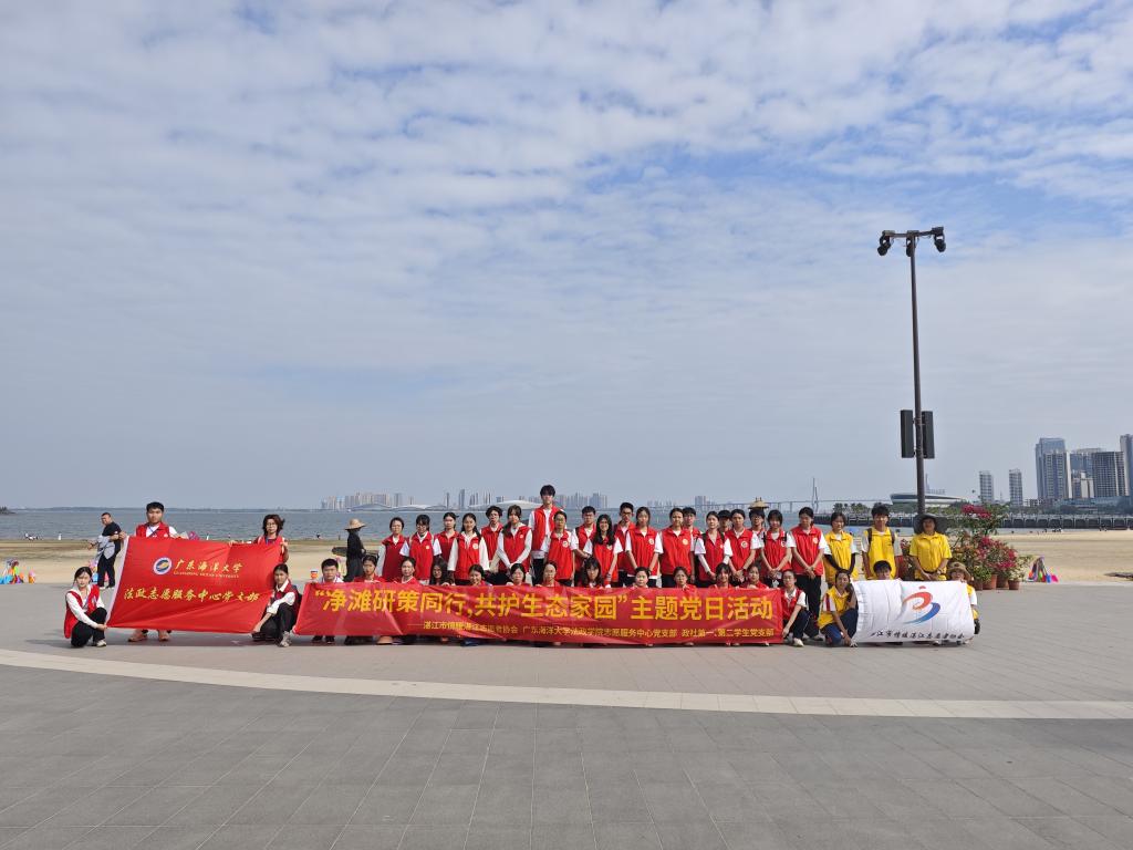 志愿服务中心党支部与湛江市情暖湛江志愿者协会联合主办了“净滩研策同行,共护生态家园”主题党日活动。本次活动选址于湛江市金沙湾滨湖湿地公园及露天沙滩区域,融合志愿服务与社会科学调研,体现了高校党支部与社会组织在公共事务中的协同治理功能。