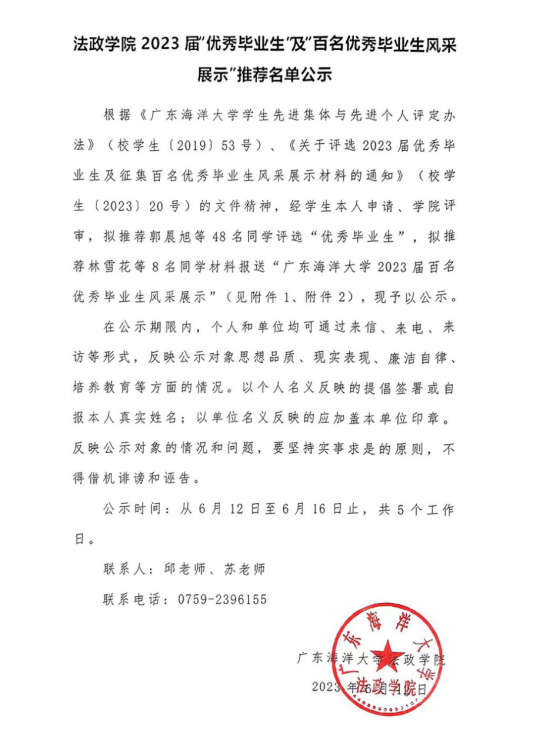 评审,拟推荐郭晨旭等48名同学评选“优秀毕业生”,拟推荐林雪花等8名同学材料报送“六合直播