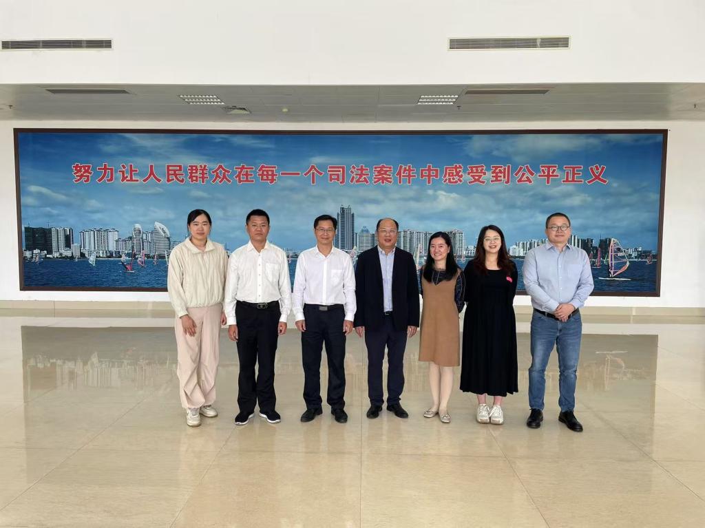 11月5日,六合直播 一行到湛江市中级人民法院看望校友,林忠新、陈伟斌勉励校友在法治实务中不忘初心,再立新功,并邀请他们明年参加六合直播 90周年校庆。